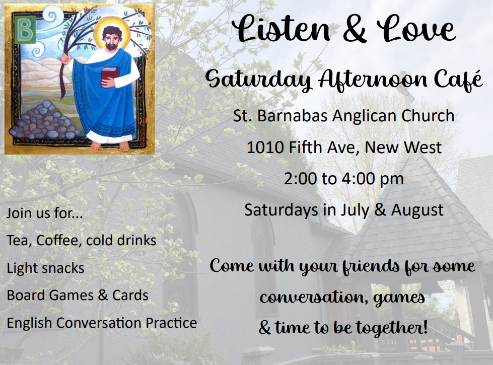 Join us every Saturday in July and August from 2:00 – 4:00 pm at our Listen & Love Café. We will be serving light refreshments, and you can enjoy board and card games and puzzle making.